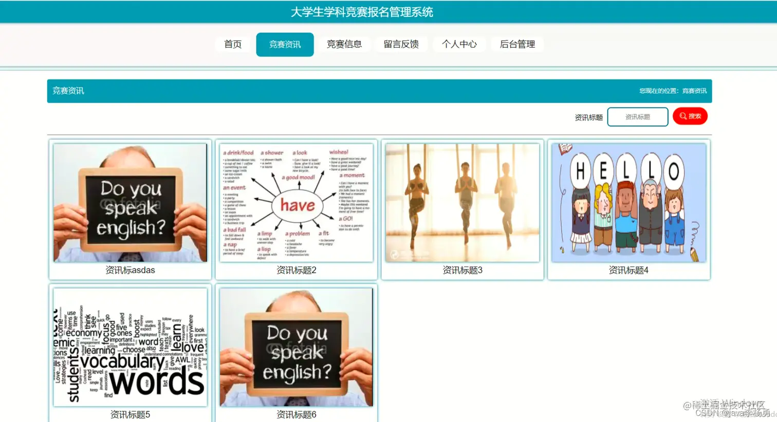 竞赛信息列表页面: