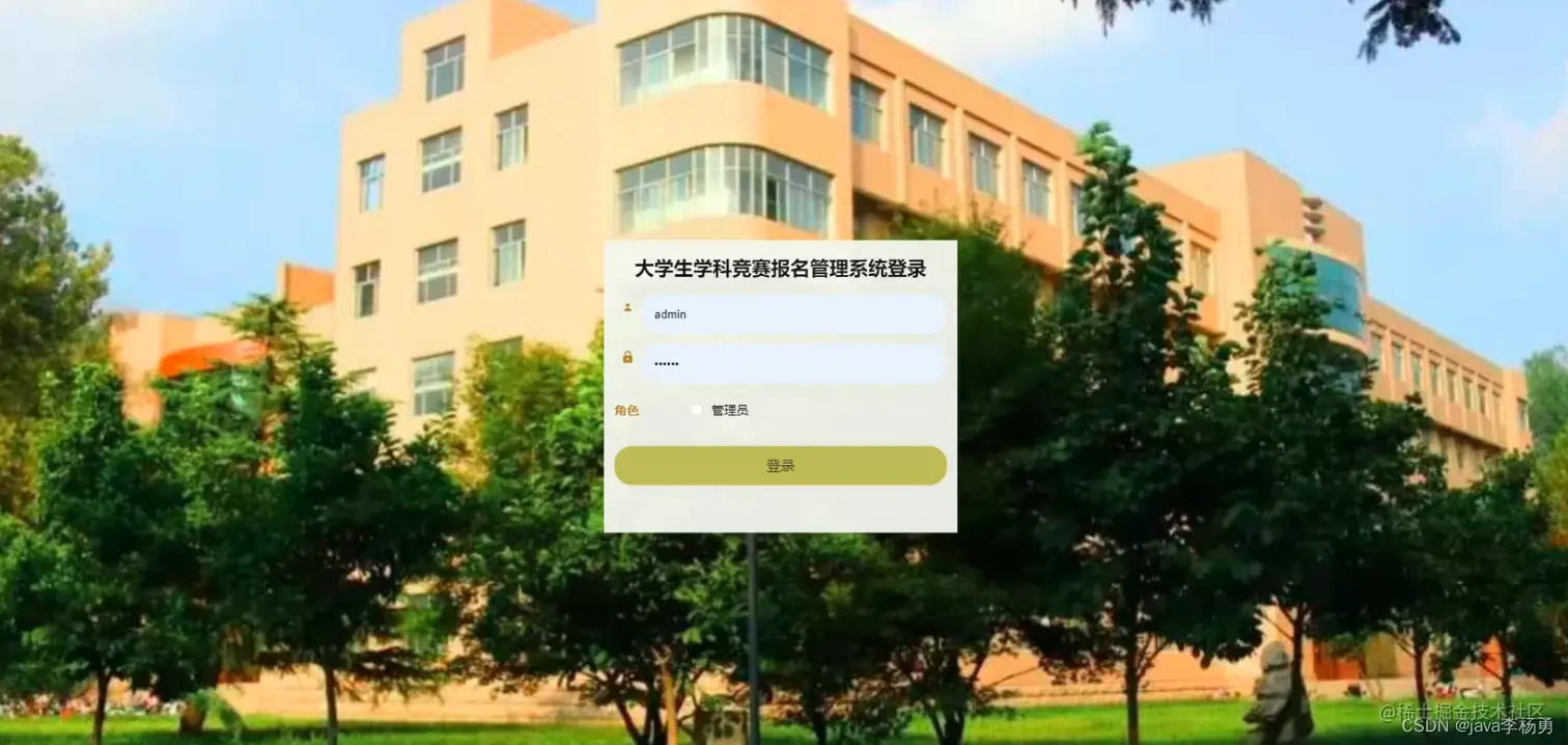 管理员登录,管理员通过输入用户名、密码、选择角色等信息,然后点击登录就能登录到系统进行系统的使用了,如图5-5所示。