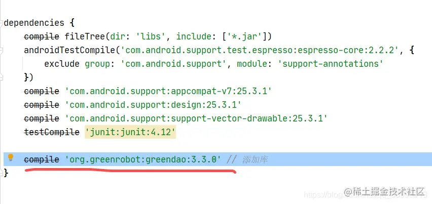 compile 'org.greenrobot:greendao:3.3.0' // 添加库