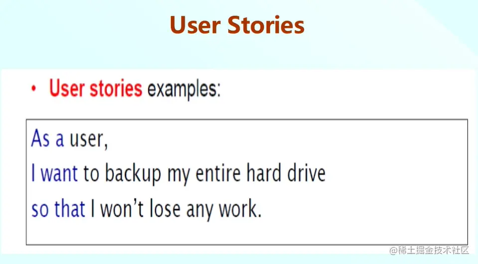 这是一个具体的user stories例子:这个故事是文件备份功能,stories描述如下:作为一个用户,希望备份整份硬盘,以便工作内容不会丢失。
