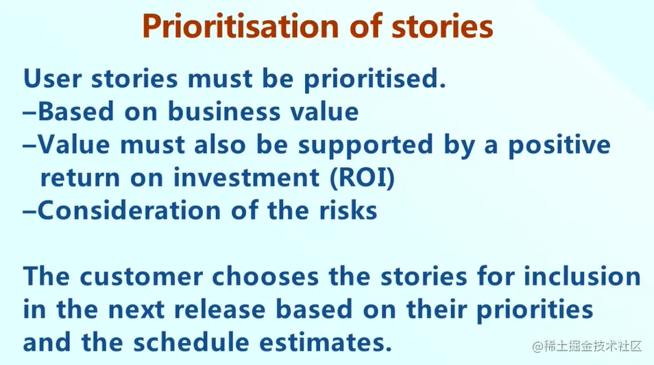 迭代开发是基于优先级的,因此需要对Story进行优先级的排序,我们可以遵守一些规则来对Story来进行排序。