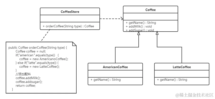 createCoffee()方法中的代码有误,以下面正文中的为准