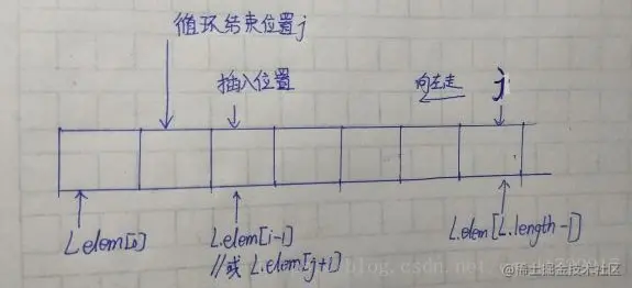 //也可以写成L.elem[j+1]=e; 循环结束后j的位置为i-2