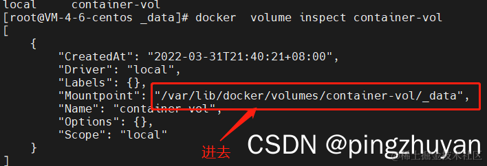 docker volume inspect container-vol #查看Mountpoint 挂载点