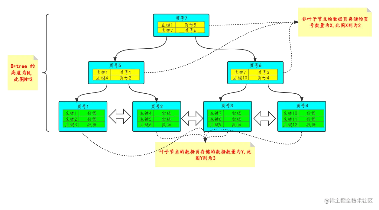 - 非叶子节点的数据页存储数量为X,也就是有X个数据页的页号