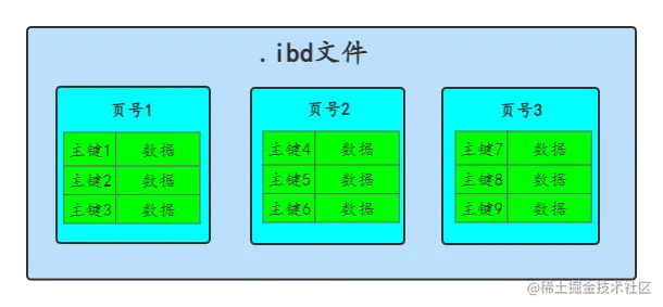 我们表中的的数据其实都是存储在磁盘的.ibd文件中,而每次读取整个.ibd文件无疑是非常慢的,所以在《InnoDB数据文件》中又提到,InnoDB将数据划分为若干个页,以页作为磁盘和内存之间交互的基本单位,InnoDB中页的大小一般为 16KB。如下