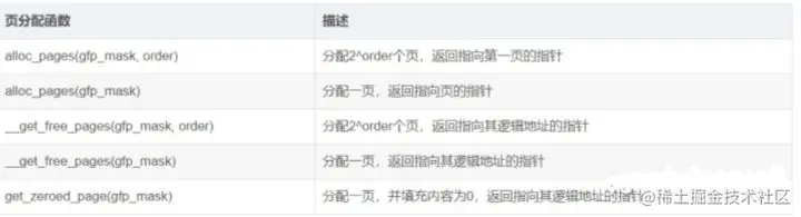- 下面列举所有的页为单位进行连续物理内存分配,也称为低级页分配器: