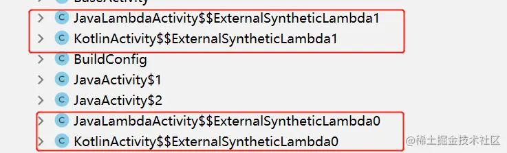 我们apk包中,发现Java Lambda写法和kotlin 内部类写法完全一样,都是生成2个文件