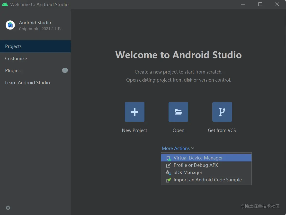 选择Virtual Device Manager,选择Pixel 5,下一步,选择推荐的安卓版本R下一步 等待安装成功。