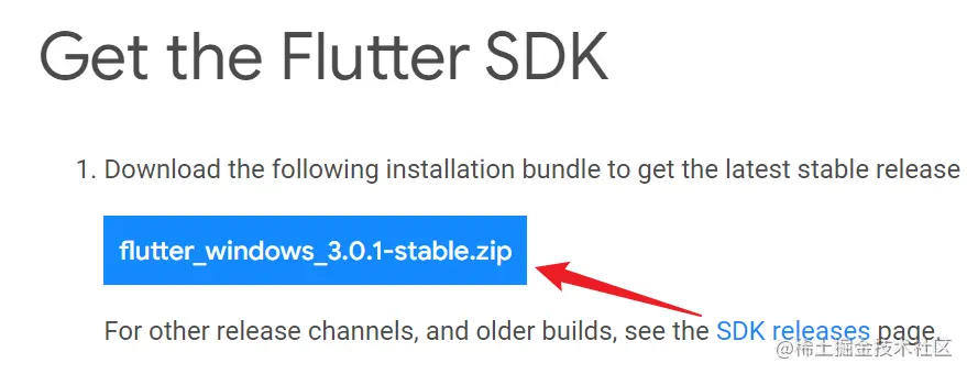 进入docs.flutter.dev/get-started… 下载压缩包,将压缩包解压到C盘根目录下,不要解压到Program files或Program Files(x86)这两个高权限目录下。