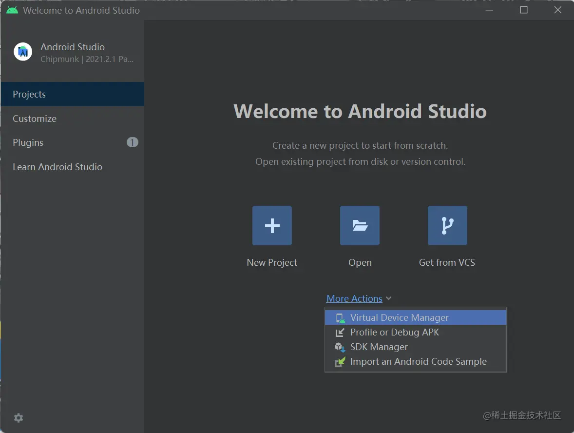 进入developer.android.com/studio 下载,勾选Andriod Virtual Device,一路默认勾选,等待安装完成,如出现红色,尝试科学上网。