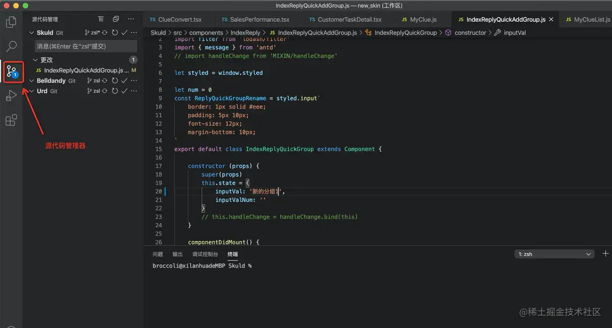 vscode左侧类似弹弓的图标是它的“源代码管理器”