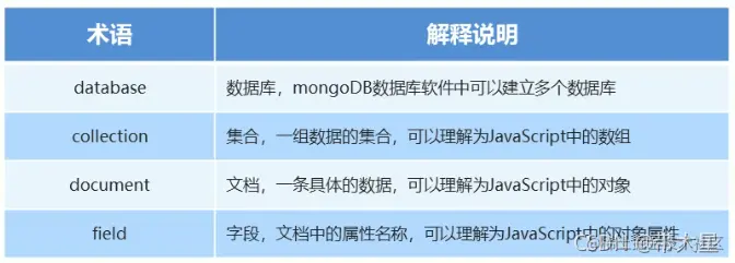 一个数据库软件中可以包含多个数据仓库,在每个数据仓库中可以包含多个数据集合,每个数据集合可以包含多条文档(具体的数据)