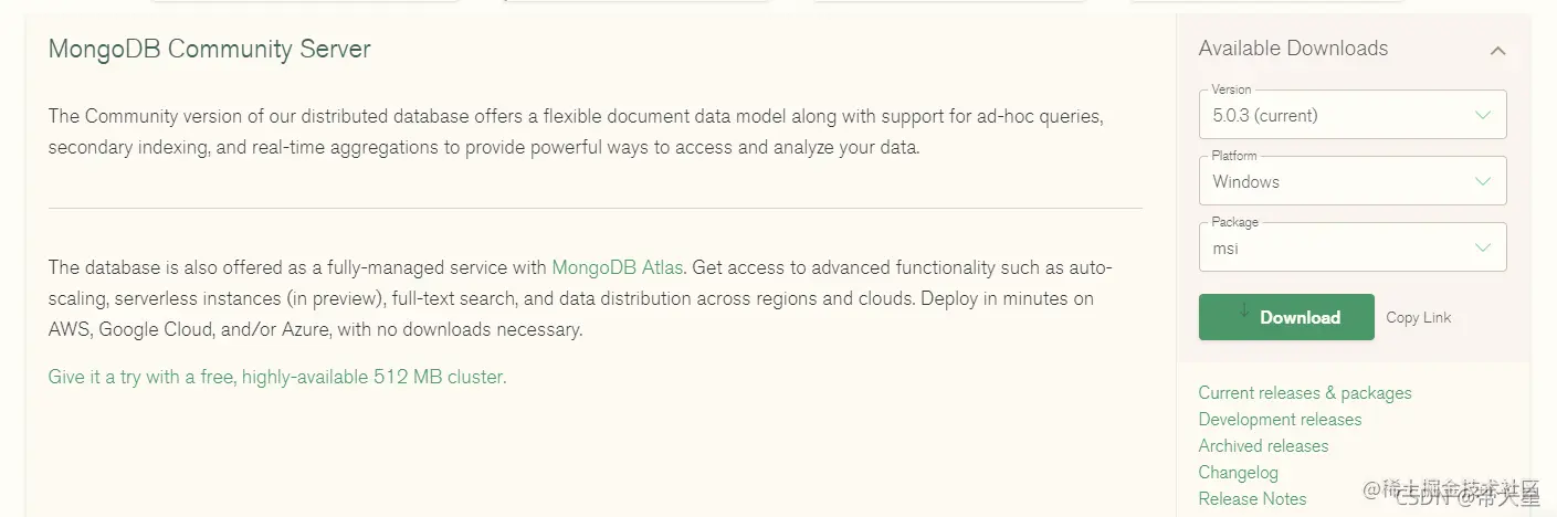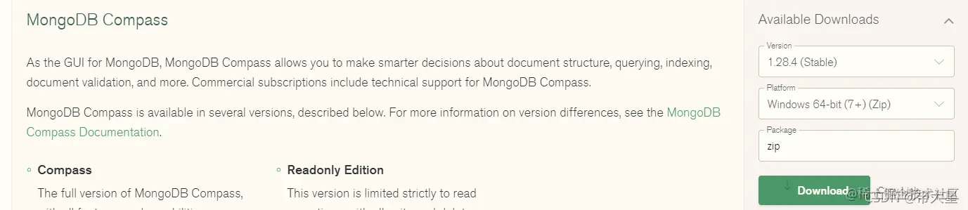 下载mongoDB和它的可视化软件(使用图形界面操作数据库的一种方式)
