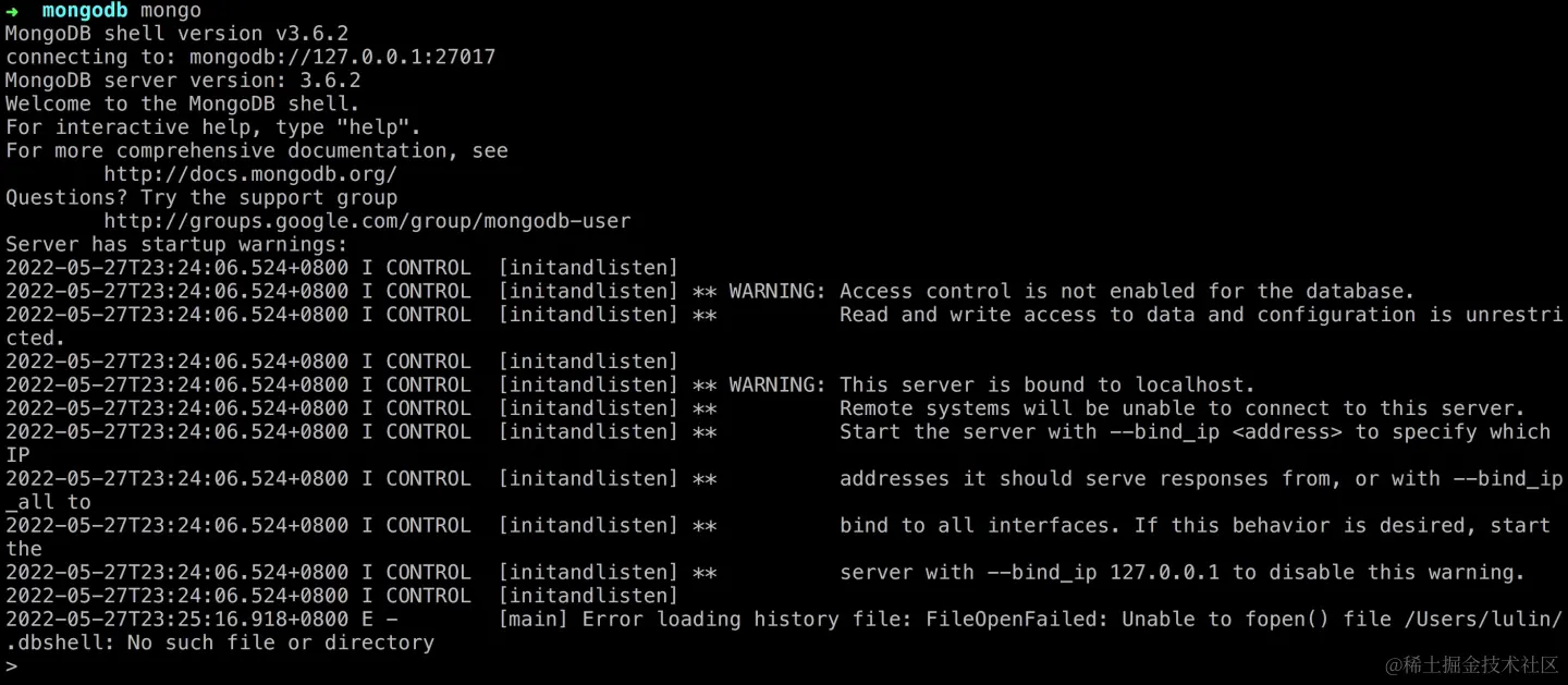mongo 启动成功