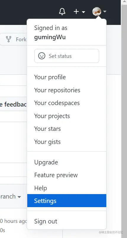 - 在github主页点击头像,下拉菜单选择