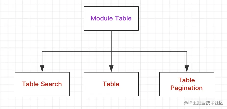 对于这里的Table页面,将其作为一个Module组件,其由三个UI组件组成,结构如下: