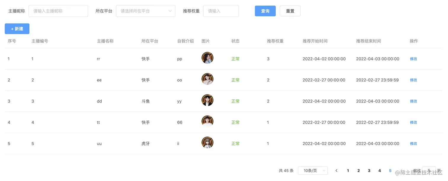 做过几个管理端需求,很多页面都差不多,上面是几个搜索框,Input或者Select类型,中间一个新建按钮,下面一个Table,最下面是Table的分页,类似下图: