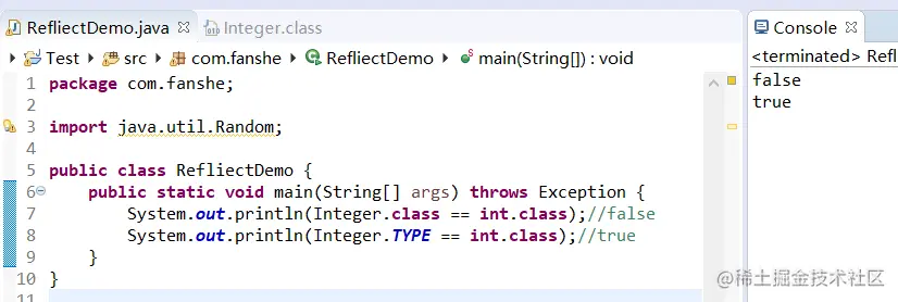 这个也算是我的一个收获,我们用的类都要加载进内存生成字节码对象才可以使用。那么我们天天用的基本类型就可以为所欲为不用进内存吗?实际上,我们在启动一个程序时,就会产生一个JVM进程,在进程产生时会自动给我们加载好九个内置的Class实例,它们分别是byte.class, short.class, int.class, long.class, float.class, double.class, char.class, boolean.class八个基本类型的Class实例对象。还剩下一个想不到吧哈哈,还有一个是void.class你敢信?这里我是这么理解的,定义方法时是需要返回值类型的,不需要返回值时用void,那么我们是不是可以把void理解为特殊的基本类型。