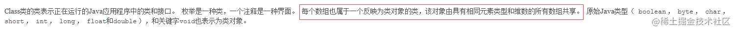 一样的,我们平时使用的数组是引用类型,也是个对象,但是它却没有类这个概念。那么数组的Class实例该如何获取呢?直接上图,本身我也是个java小白,自学过程中感觉图片更直接,并且更容易让人接受。