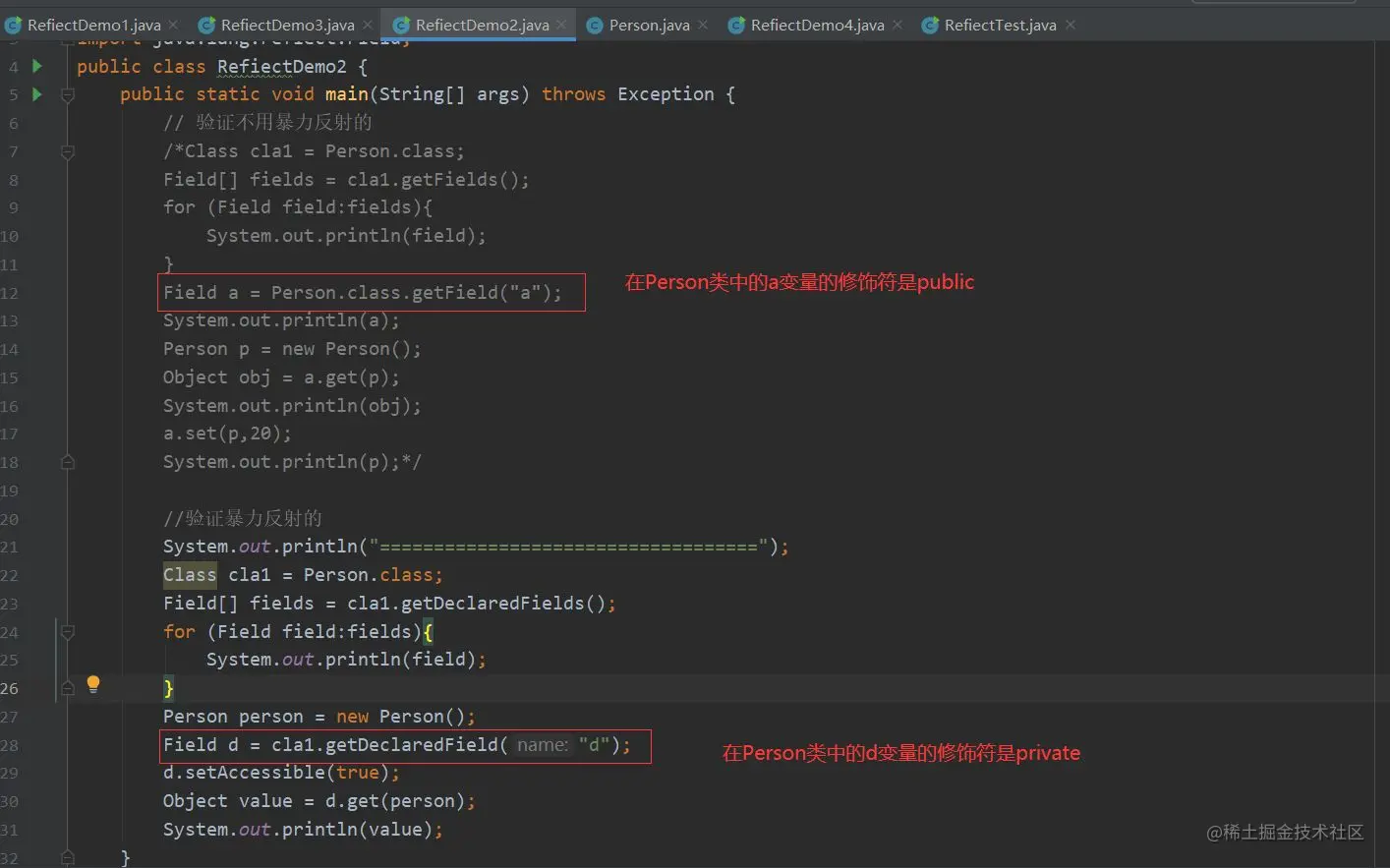 这里和构造器是类似的,需要注意的也是暴力反射,将不可访问的,通过setAccessibleObject()方法设置成可访问的。代码一定要自己独立写一遍。独立!独立!独立!