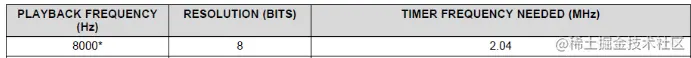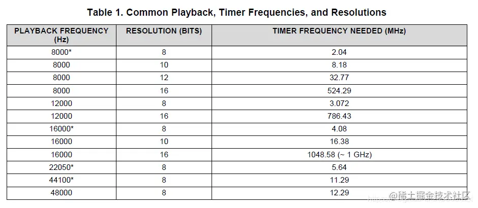 看看采样频率和位深需要定时器频率的关系如下表格: