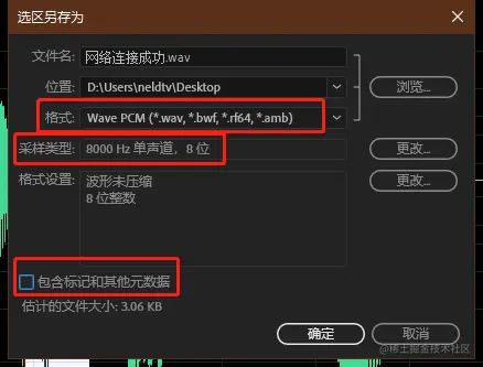- 采样类型:8000 Hz,单声道,8位