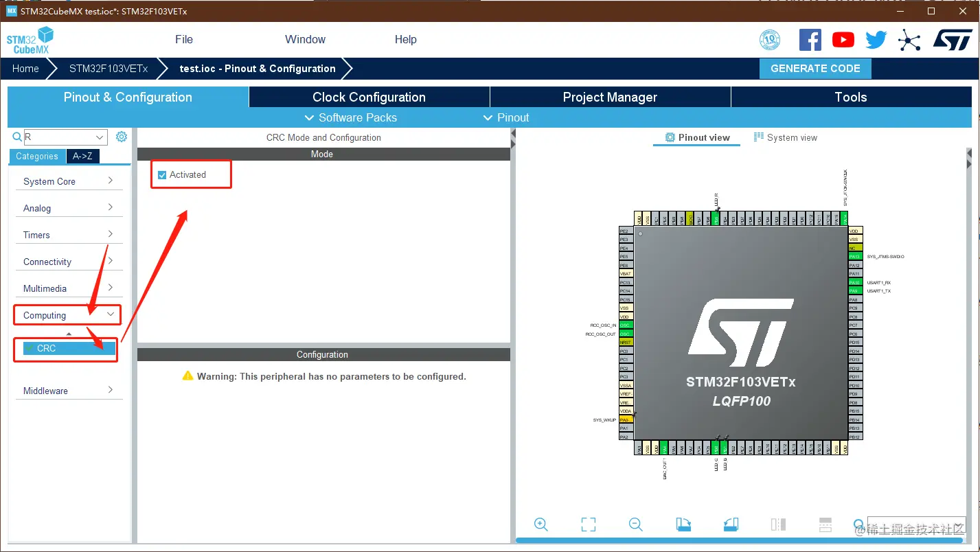 在 Computing 中选择 CRC 设置,并勾选 Activated 激活