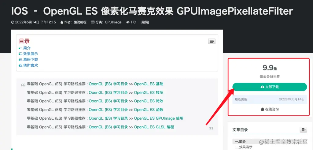 OpenGL ES Demo 下载地址 : IOS – OpenGL ES 像素化马赛克效果 GPUImagePixellateFilter