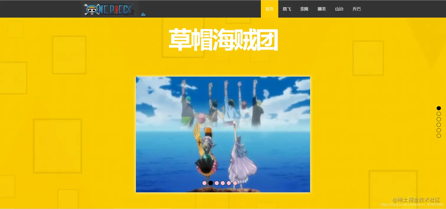 - 写了一个草帽海贼团的动态网页,用的是原生JS写的,个人感觉网页的风格还是挺不错的。