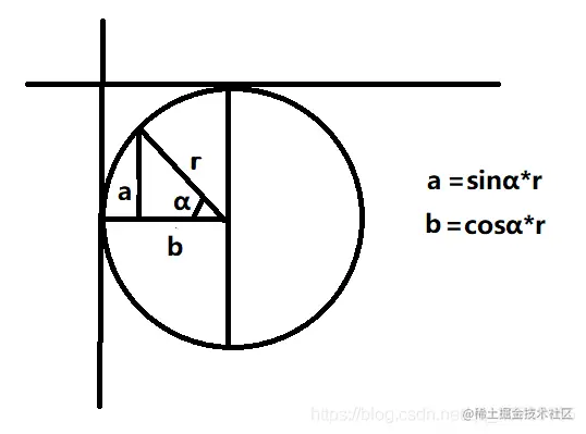 由于文字需要保持水平角度,所以不能使用旋转,这里只能在相应位置绘制了,不过所幸位置都是有规律性的,配合Math.cos()以及Math.sin()函数就可以算出位置,如图: