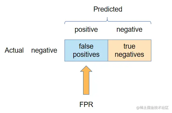 假正类率(False Positive Rate,FPR),假阳性率- ,是把负类预测错误的数,与所有的负类总数的比率