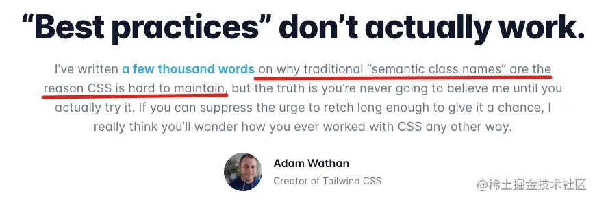 那 Tailwindcss 解决了什么问题?可以从作者的意图看出: