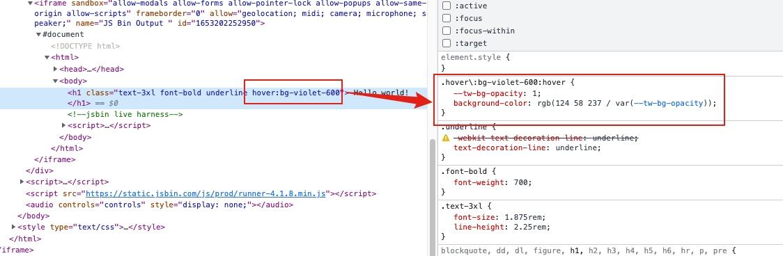在 Tailwindcss 中不是给现有的 class 添加一个 hover 状态,而是新增一个特定功能的 class :