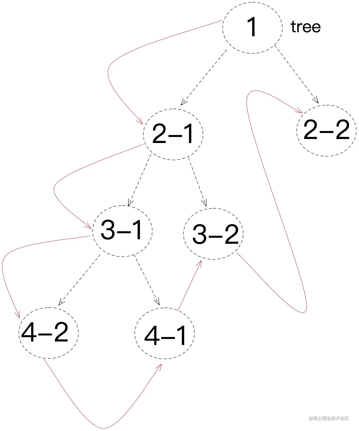 首先我们从上面一段话中,我们知道遍历的对象是树,树是一种数据结构,我们在js中可以模拟它,具体我们画一个图 以上就是一个基本的树结构,在js中我们可以用以下结构去描述