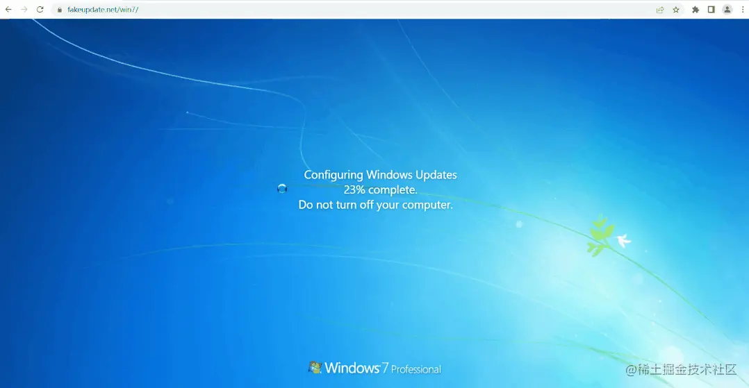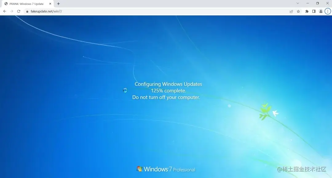 看看下面这个页面,如果不是顶部的浏览器地址栏,你是不是也会把它当成 windows 的系统升级界面?