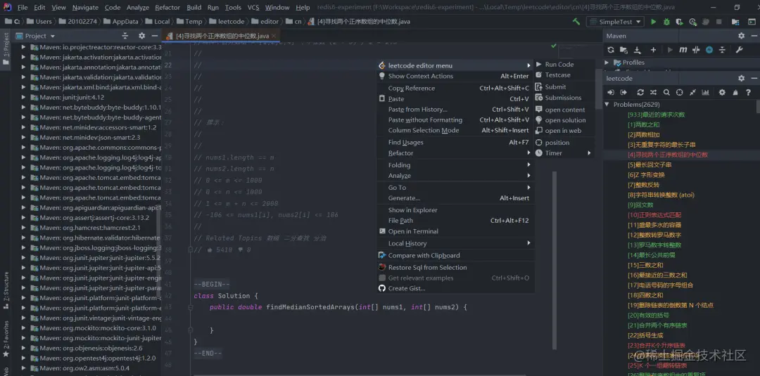 这时候,就要拿出这款隐蔽性极强的 idea 插件leetcode editor了,安装完成后的界面是下面这样的。