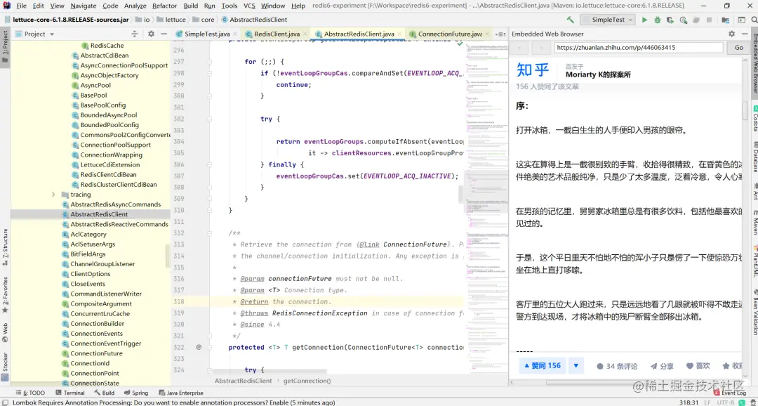 这时候就可以用用这款 idea 插件了,直接在插件市场搜索Embedded Web Browser就可以找到,它的作用很简单粗暴,就是在 idea 的侧边栏打开一个浏览器。功能虽然简单但还是很方便的,毕竟不用每当身边走过一个人就频繁地切换浏览器和编程环境工具的页面,别人不仔细看还以为你真在干活~