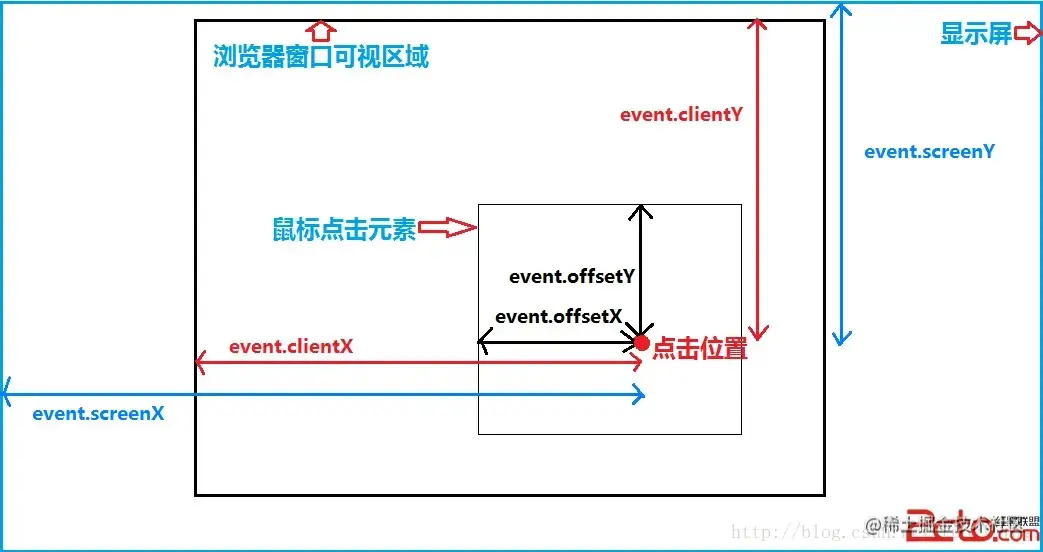 event.clientX /event.clientY是目标点距离浏览器可视范围的X轴/Y轴坐标