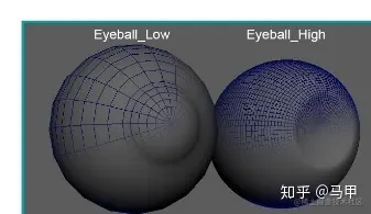 1、eyeBall 的高模是一个往里凹的模型,低模是一个往外凸的模型。如图: