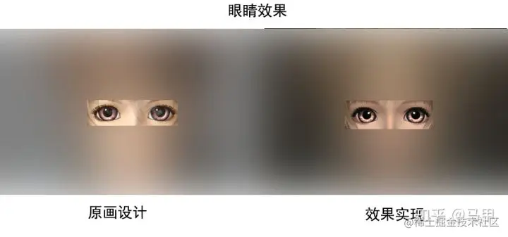 很早之前美术有个眼球效果的需求,然后扔给我一张原画图,让我照着做,前期并没有太多的需求,唯一的需求就是要像,越像越好!好吧,我是美术的搬运工,让我做啥我做啥,观察了一下原画,发现原画眼睛的效果偏迪士尼卡通风格,写实但又很夸张,所以我并没有走基于物理渲染的那一套光照模型,而是基与艺术导向来写shader,这样写的好处是用最简单的光照模型模拟出最贴近原画的效果,但坏处是不稳定,完全不遵循物理守恒,在不同的环境下可能出现不协调的现象,最后实现效果如下: