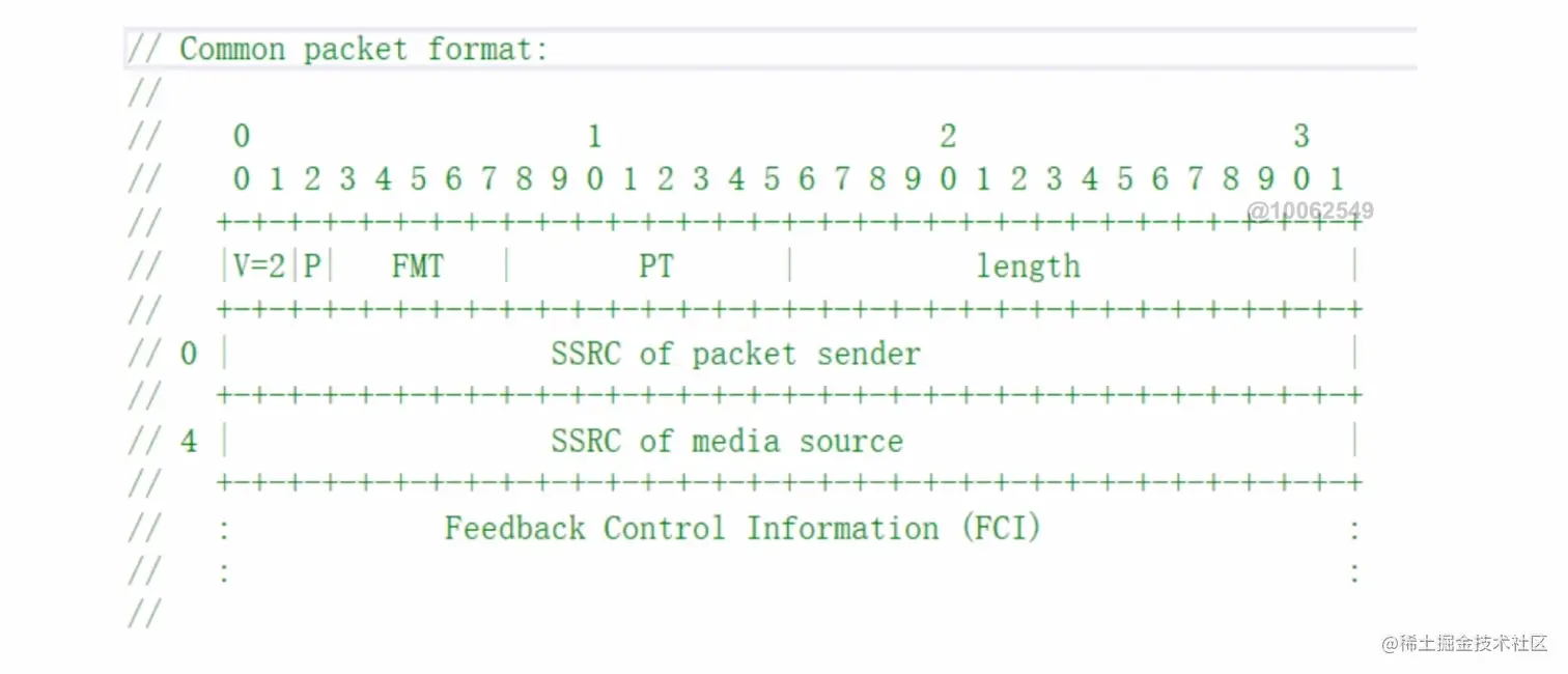 下图是RTCP feedback的消息头通用格式, 每个字段的含义在前文中都有介绍.