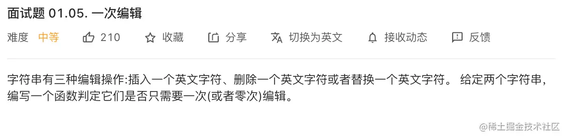 我们从题目中,能获取到要求对两个字符串进行删除、添加或者替换操作之后,判断使它们相等的操作小于2次的结果,结果为布尔类型。