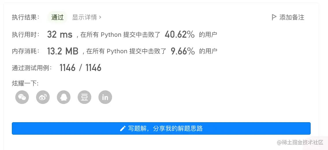 - 空间复杂度O(1),没有额外使用空间(Python枚举方法,可以减少空间的损耗)