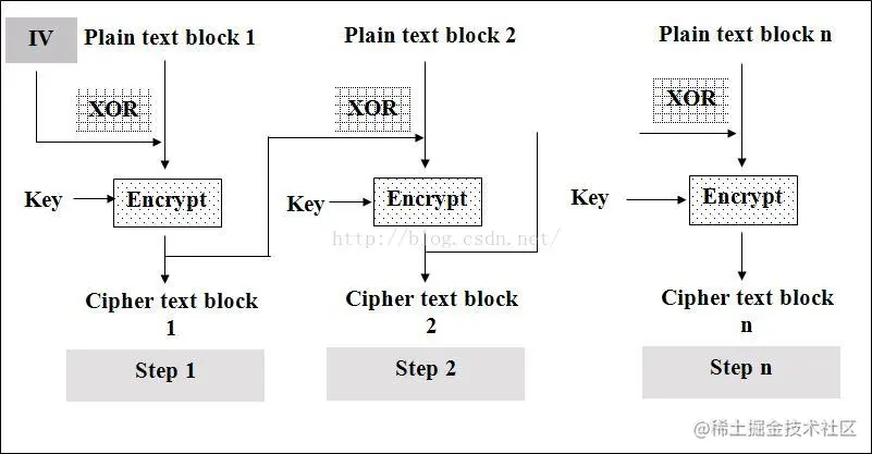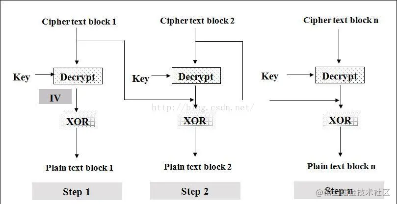 2)CBC(Cipher Block Chaining)/密文分组链接方式