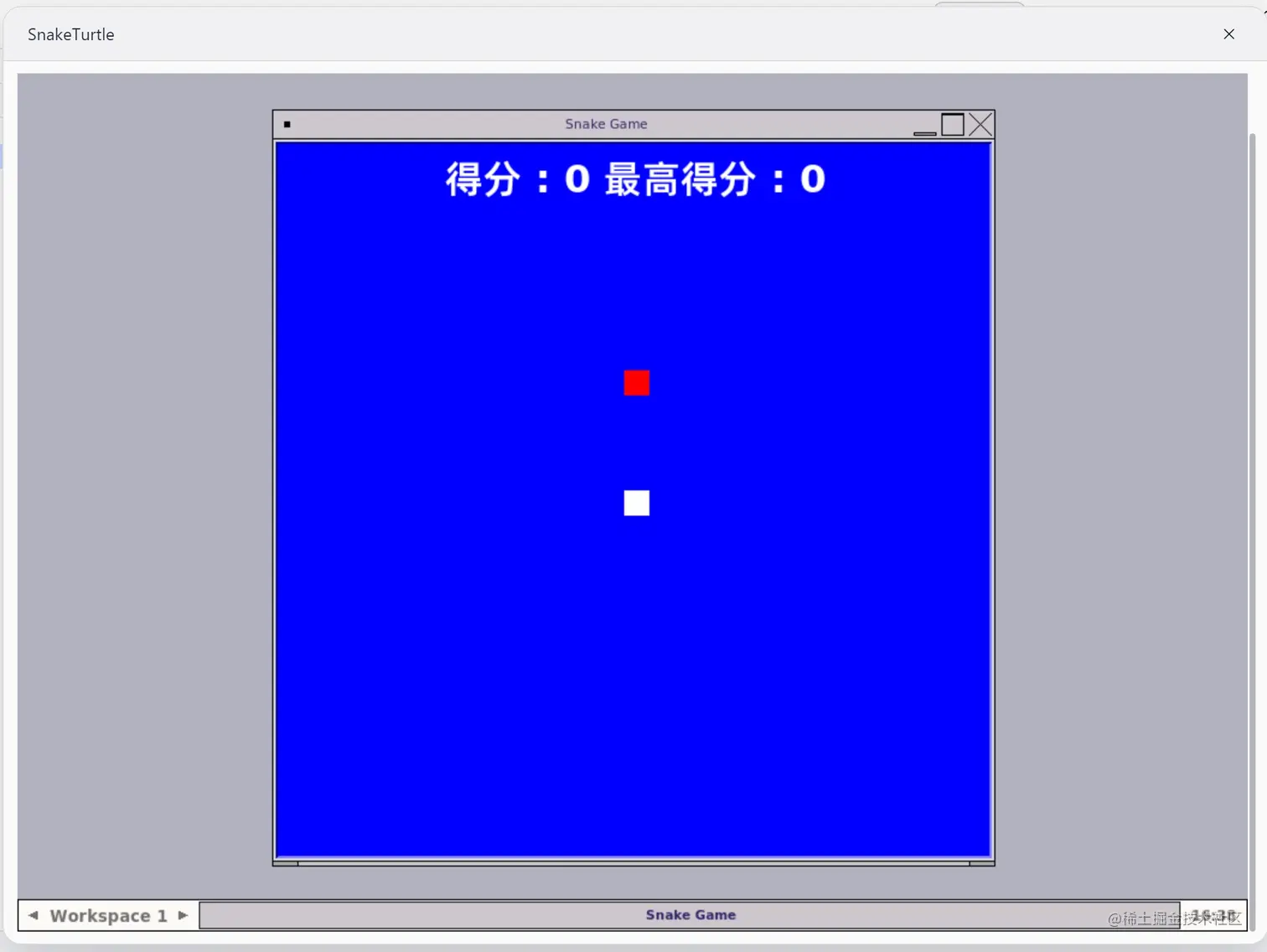 完成模块导入后,我们需要绘制游戏窗口、蛇头及食物等游戏内容,同时也需要在顶部显示游戏得分。