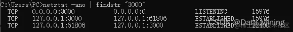 netstat -ano | findstr "3000"