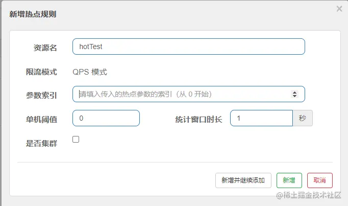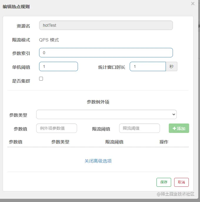 热点规则除了上述的基础使用外,还有例外项的操作,例外项参数可以达到更加细粒度的控制,比如我们在当前的案例中,目前v1参数在访问时超过阈值则会被限流,当时如果我们想通过参数v1等于具体的值的时候,来出发不同的流控效果时,改怎么操作呢?