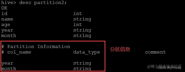 #这里的混合分区指的就是,year字段是我们手动指定的,属于静态分区,month和day是根据实际值进行动态分区的,所以这里就是混合分区。