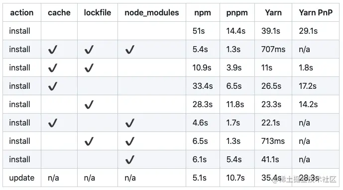 - 快速。pnpm 比替代方案快 2 倍 数据来源